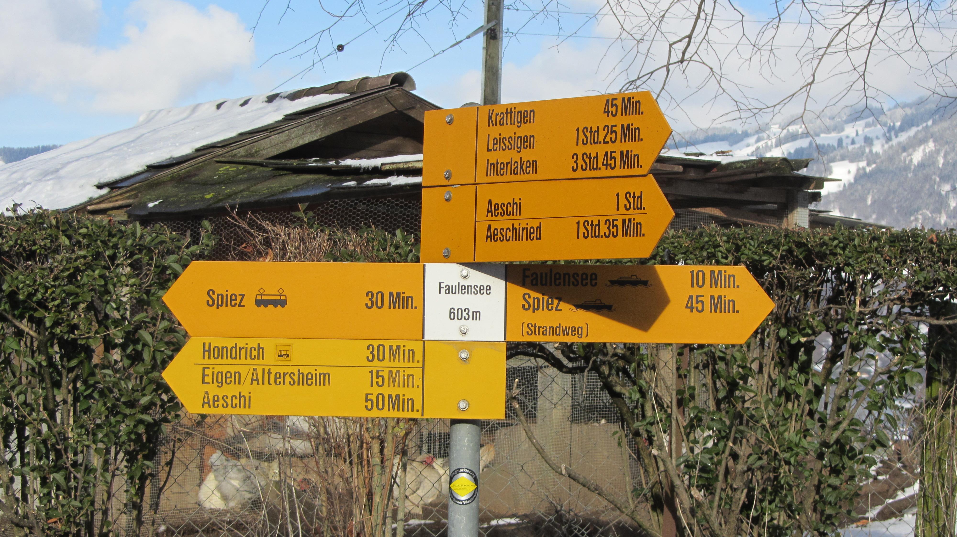 Mit dem Bus: Haltestelle Faulensee Dorf, Richtung Bahnhof ca. 10 Gehminuten.