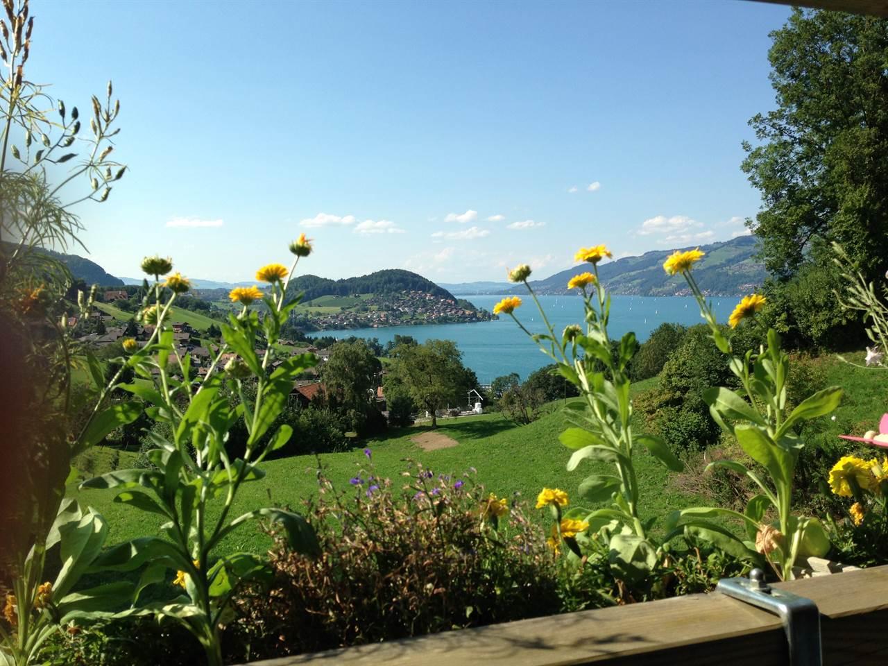 2 1/2- Zimmerwohnung (50m2) mit separater Küche, Esszimmer, Schlafzimmer und Wohnzimmer, Bad/WC, Sat-TV, Radio, Balkon mit wunderschöner Sicht auf den Thunersee und Berge. Ruhige, sonnige Lage. 10 - 15 Minuten zum See und Strandbad.
