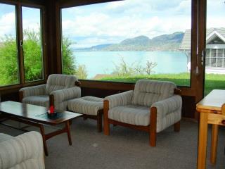 Möblierte 2-Zimmerwohnung in Einfamilienhaus am Waldrand, sehr ruhig, Wohnzimmer mit TV, Doppelschlafzimmer, Küche und Bad mit Badewanne, grosser Sitzplatz mit Sicht zum See.