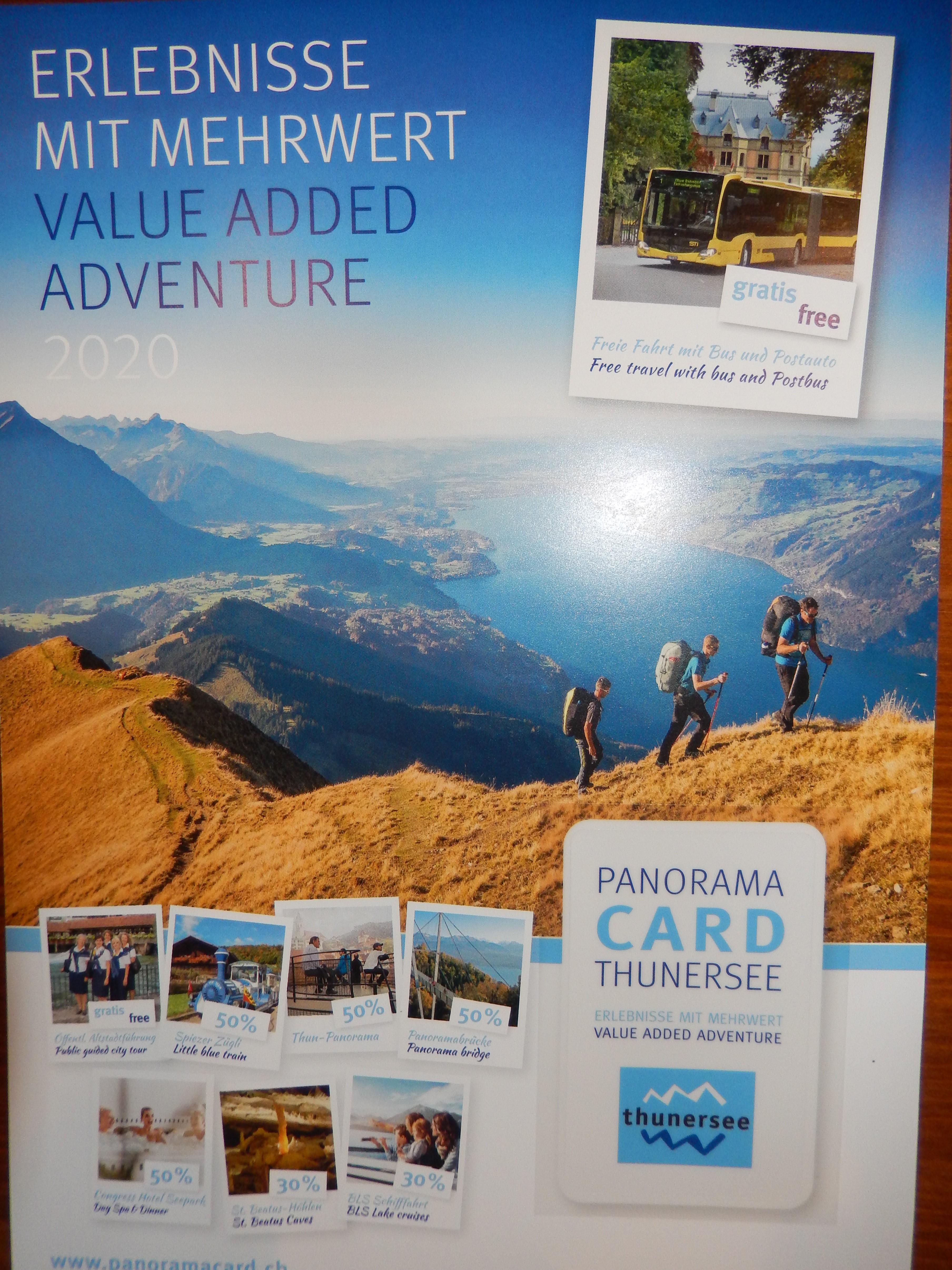 Als Übernachtungsgast der Region Thun-Thunersee profitieren Sie mit der Gästekarte von vielen Vorteilen. Nutzen Sie beispielsweise die freie Fahrt mit dem STI-Bus oder PostAuto gemäss Linienplan und profitieren Sie von zahlreichen Vergünstigungen auf die vielseitigen Ausflugsziele der Region Thun-Thunersee. Alle Informationen finden Sie unter www.panoramacard.ch.